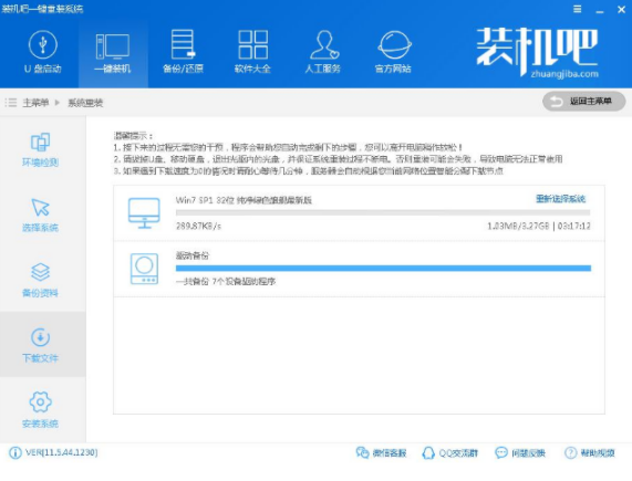 下載裝機吧一鍵重裝系統軟件,打開運行裝機吧一鍵重裝系統軟件,根據溫馨提示關閉所有的殺毒軟件。