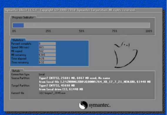 6.進入此界面,執行win7系統安裝到C盤的操作,等待進度條完成;