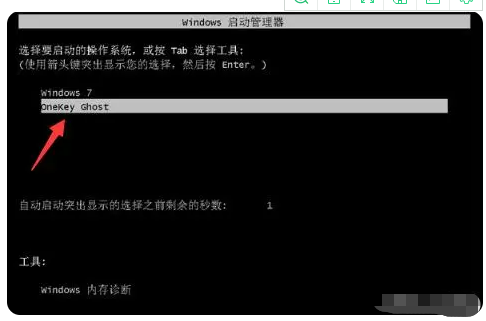 5.此時電腦重啟,啟動啟動項多出OnekeyGhost,默認選擇此進入;