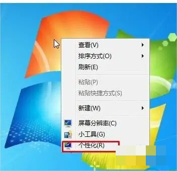 在桌面空白處單擊右鍵,選擇“個性化”;