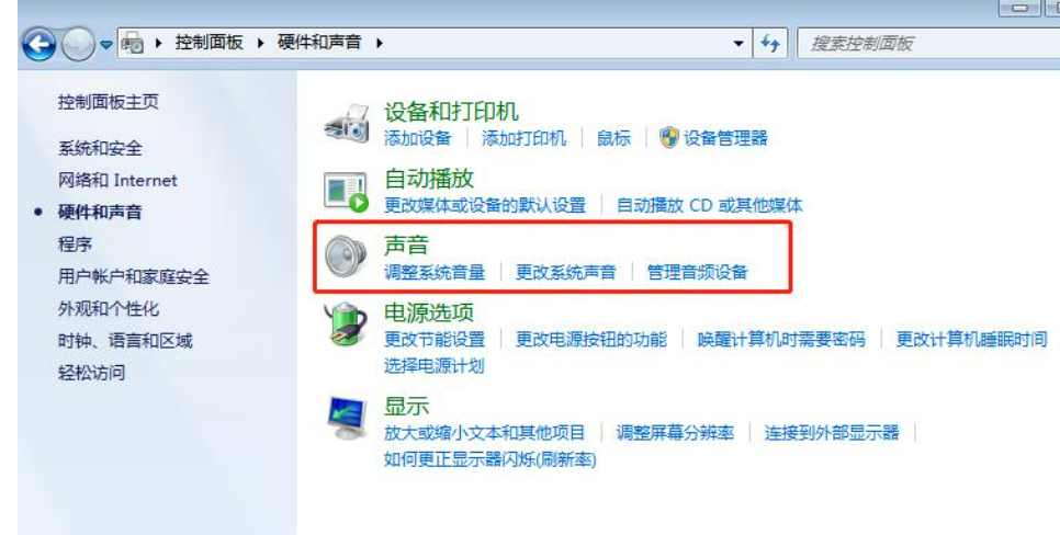 回到桌面,打開控制面板,打開硬件和聲音,點擊聲音。