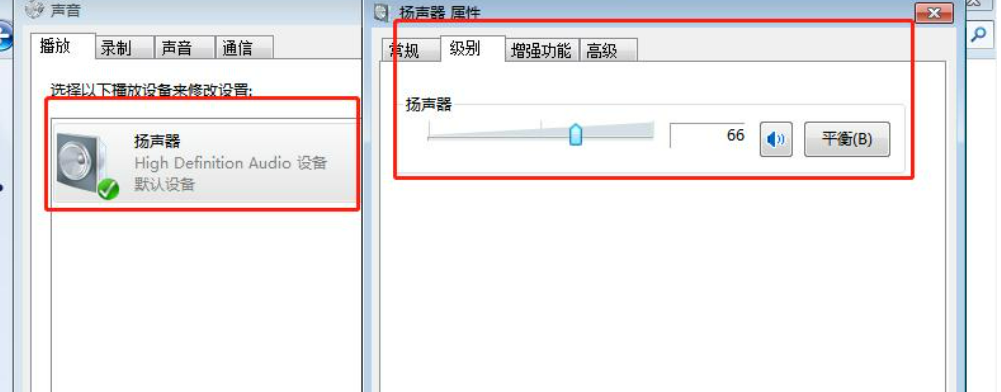 4、雙擊揚聲器打開屬性窗口,點擊上方級別選項,喇叭為正常狀態即可。