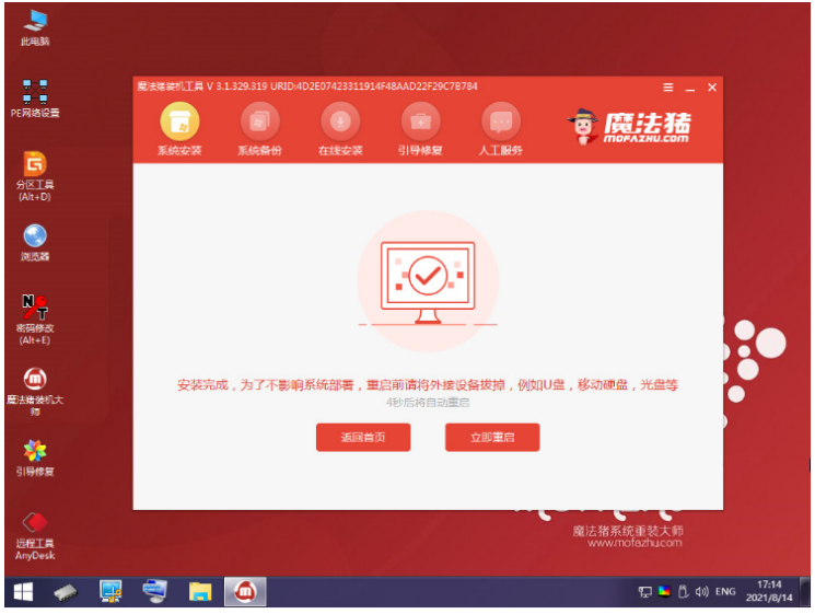 10、系統安裝完成之后,再次點擊立即重啟電腦。