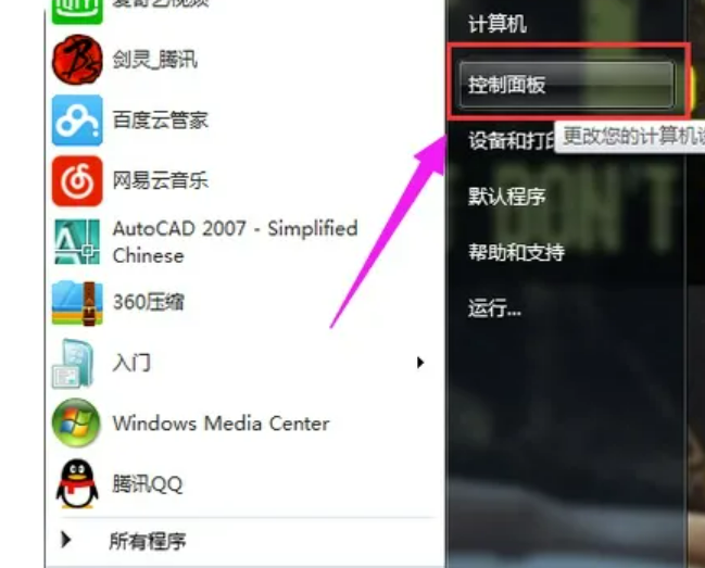 1、首先打開計算機,點擊工具欄的【開始】,再點擊進入【控制面板】。