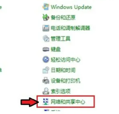 2、進到控制面板的界面,點擊【網絡和共享核心】。