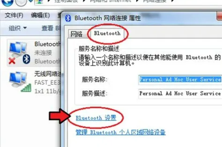 5、出現對話框,點擊【Bluetooth】,再點擊【Bluetooth設置】。