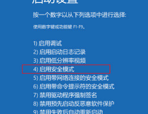 4.電腦重啟后出現啟動設置界面,單擊F4鍵進入安全模式。