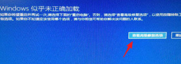 1.強制關機,如此反復三次,直到屏幕顯示進入自動修復模式,然后單擊【查看高級修復選項】。