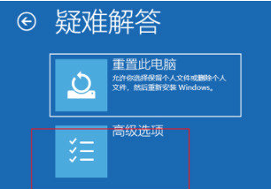 2.單擊【疑難解答】,然后選擇【高級選項】進入。