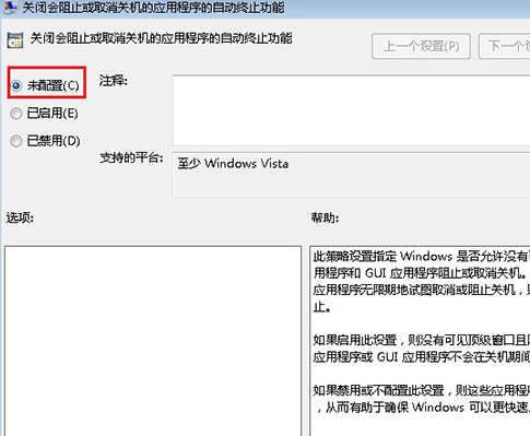 3、這里我們把“已啟用”改為“未配置”或“禁用”,但是一定不能是“已啟用”,如果是:已禁用,此時可以嘗試修改為:未配置,最后點擊確定,再重啟電腦即可。