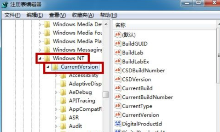 6、接著依次進入文件夾“Windows NT”和“Currentversion”。