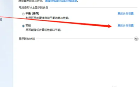 在電源選擇中,選擇節能,點開更改計劃設置,如下圖: