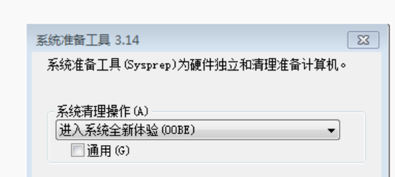 3、在打開的系統準備工具窗口,在系統清理操作點擊“進入系統全新體驗(OOBE)”,勾選“通用”,點擊“關機選項”為“重新啟動”,點擊“確定”,等待系統恢復出廠設置就可以啦。