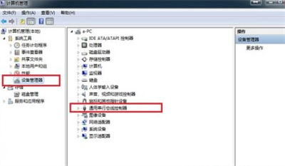 2、進去計算機管理的頁面之后,點擊設備管理器,選擇“通用串行總線控制器”。