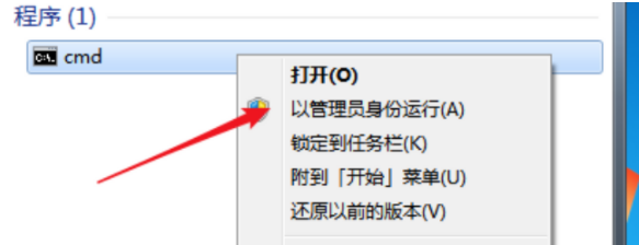 2、找到cmd后,右鍵選擇“以管理員身份運行”。