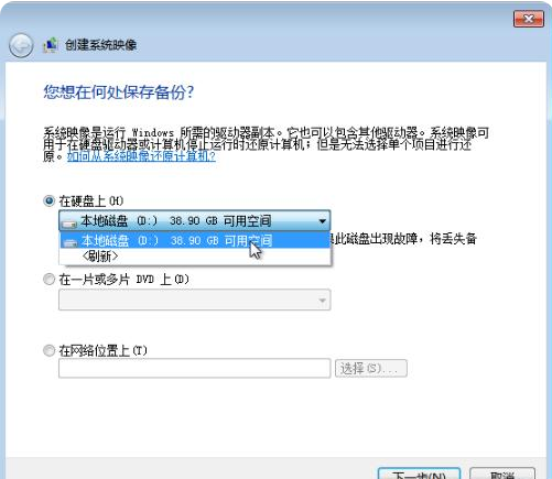 4、接著將備份保存到磁盤C以外的磁盤,點擊“下一步”。