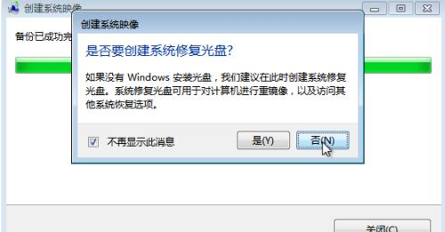 6、備份成功之后,將會彈出創建系統修復盤的提示,點擊“否”
