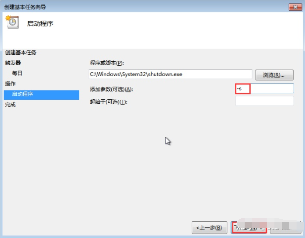 8、在“添加參數(可選)(A)“輸入”-s“,點擊”下一步“。