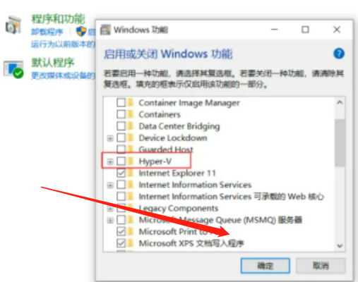 4、接下來向下滑動列表,點擊Hyper-V前面的方塊。