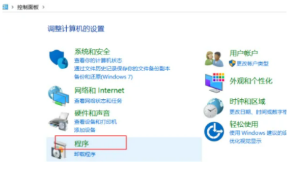 2、接下來在控制面板界面下點擊位于界面下方的程序。