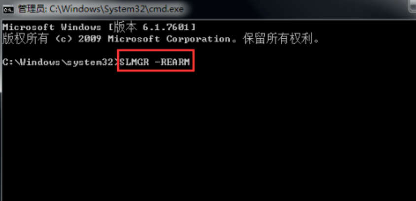 3. 在這個界面>后面輸入SLMGR -REARM,注意空格。