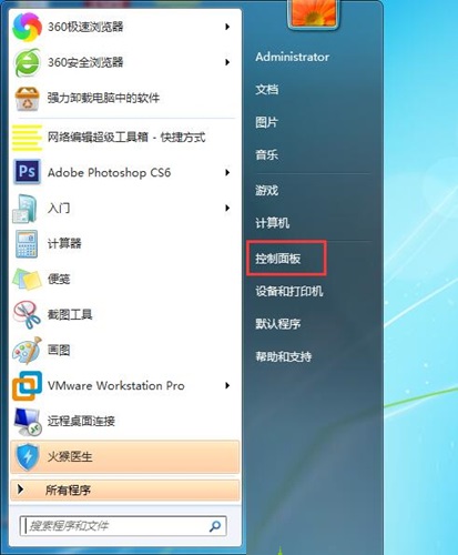 1.首先點擊開始菜單,然后打開電腦的控制面板;