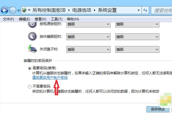 04在打開的窗口中點擊”喚醒時需要密碼“選項。