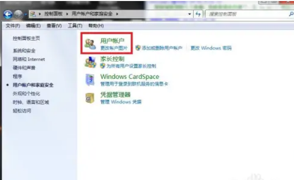 在控制面板,打開【用戶帳戶和家庭安全】。