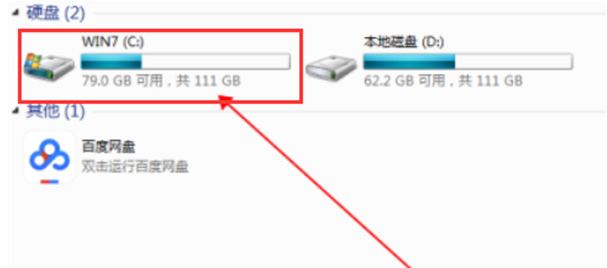 2、進入到頁面,點擊后在彈出的頁面點擊“Windows7(C:)”打開C盤。