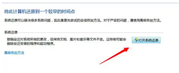 點擊頁面上的打開系統還原選項。