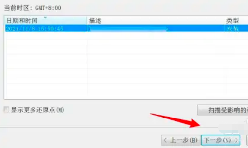 選擇還原點,點擊下一步按鈕。