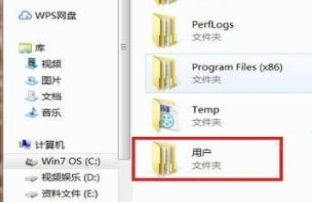 2、在c盤文件中找到一個名為“用戶”的文件夾。