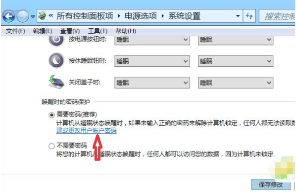 04在打開的窗口中點擊”喚醒時需要密碼“選項。
