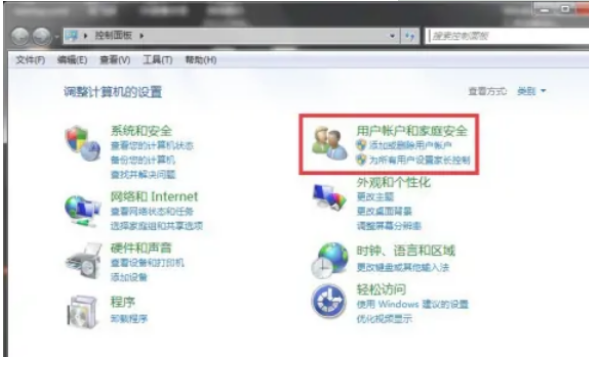 在控制面板,打開【用戶帳戶和家庭安全】。