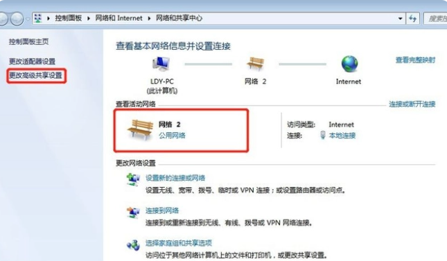 6、在桌面底部的網絡連接圖標上鼠標右鍵,選擇【打開網絡和共享中心】,然后點擊【高級共享設置】選項。