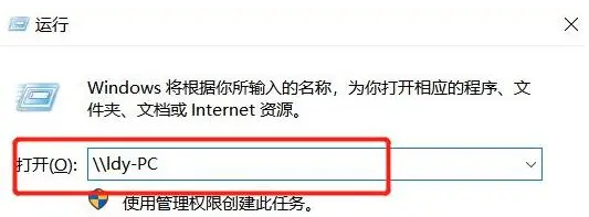 2、在另一臺需要共享的電腦上,按win+R快捷鍵打開運行,輸入:\\ldy-PC回車執行。ldy-PC是共享打印機的計算機的名稱。