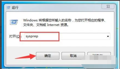 1、使用快捷鍵 Win+R,打開運行窗口,輸入代碼“sysprep”,點擊確定。