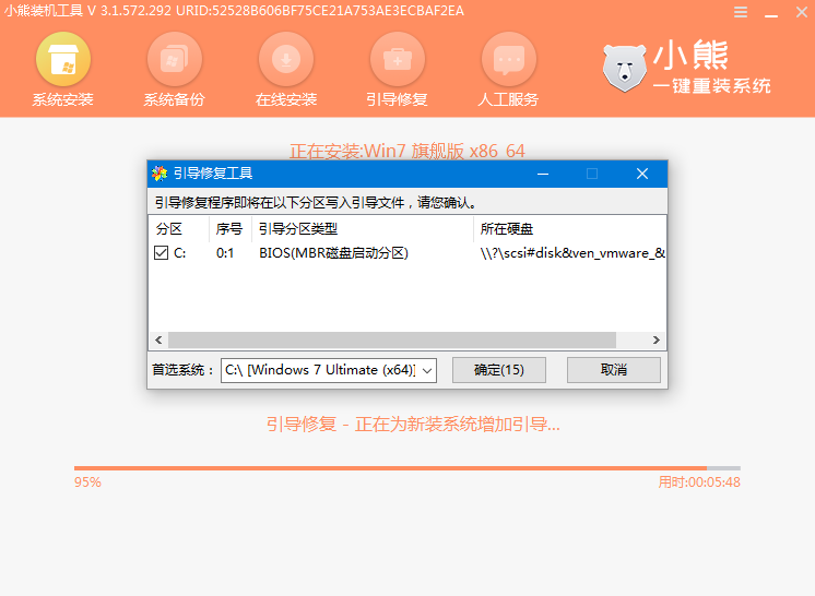 10、安裝過程中會彈出以下修復窗口,進行寫入引導文件,點擊確定。