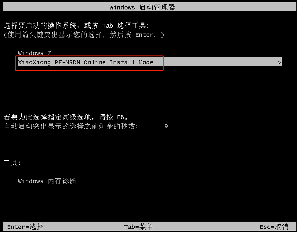 8、重啟電腦,選擇XiaoXiong PE進入系統。
