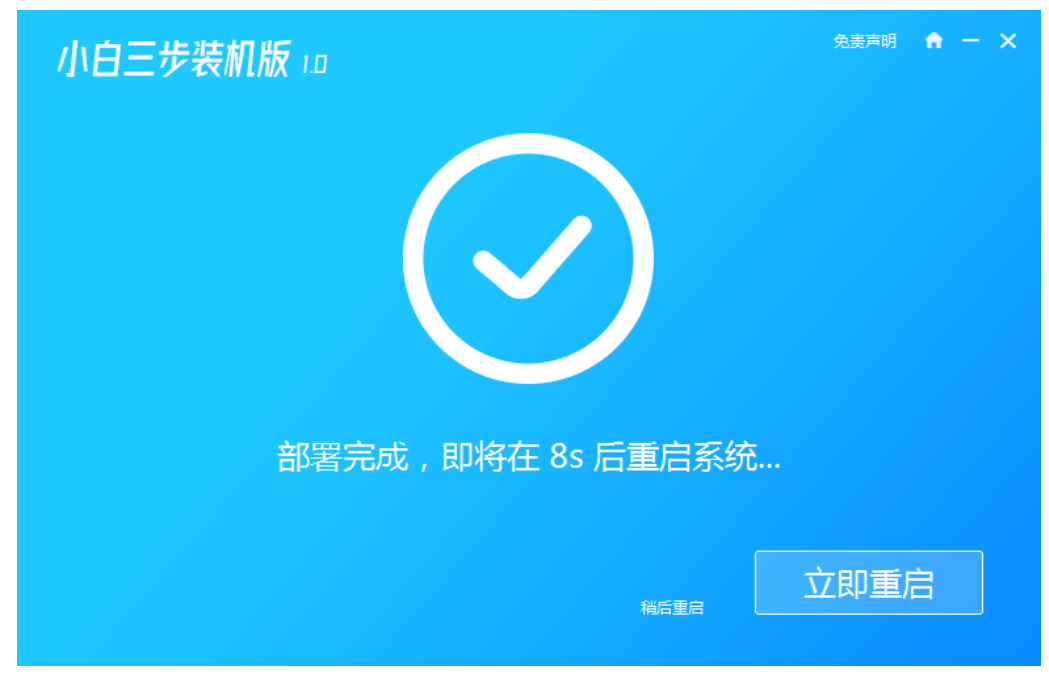3.下載完成后小白三步裝機版軟件會幫助我們部署安裝環境,點擊立即重啟電腦。