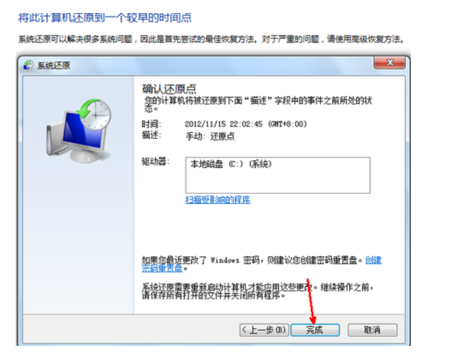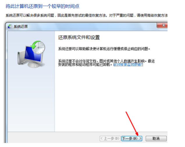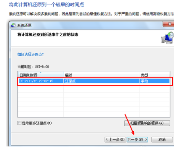 6、選擇還原點,默認的初始的狀態就可以啦。