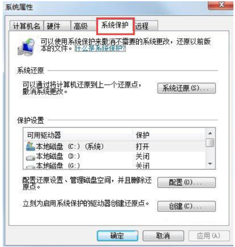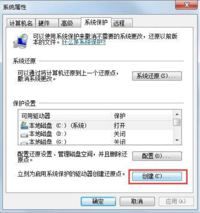 4、鼠標點擊立刻為啟用,系統保護的驅動器創建還原點后面的創建即可。