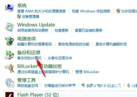 方法一:打開控制面板備份計算機中點擊恢復系統設置或計算機