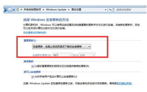 方法一:把“重要更新”改為“檢查更新”來還原win7系統