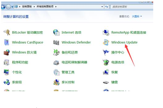 5、在控制面板頁面中點擊進入“Windows Update”。