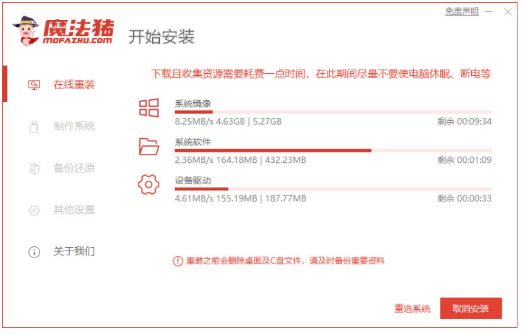 2、大家耐心等待下載,然后下載完系統鏡像后裝機軟件將會開始自動部署安裝環境。