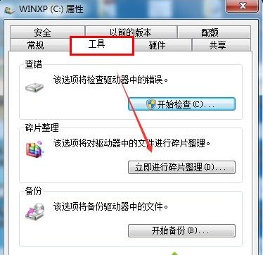 4.接著切換到工具選項,點擊“立即進行碎片整理”,進入下一步。