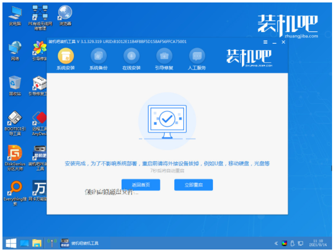 7、系統安裝完成會后,點擊立即重啟電腦。