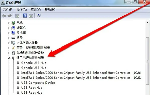 3、進入到設備管理器的頁面,找到USB控制選項。