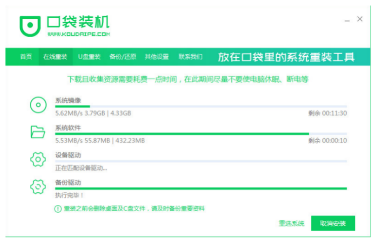 3、裝機工具此時將會開始下載系統鏡像、軟件以及設備驅動等等。